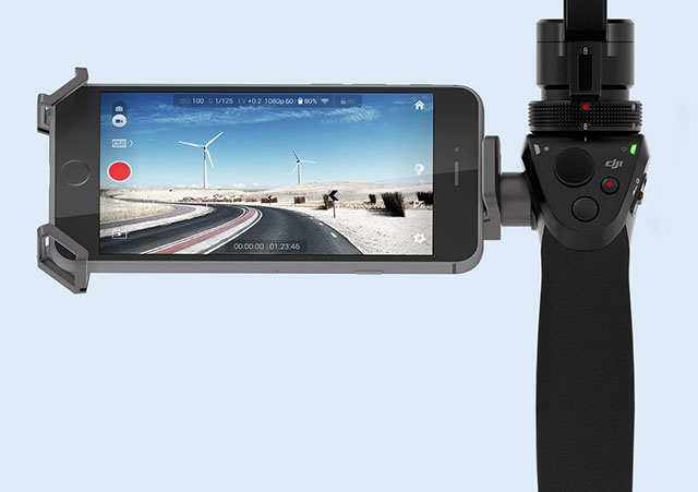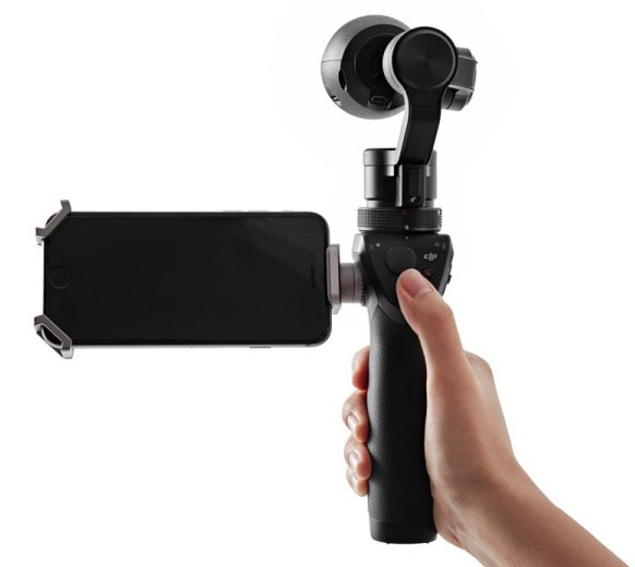 Рукоятка Osmo разработана с учетом требований по высокой надежности и эргономичности. Кнопки и различные органы управления расположены вблизи большого пальца. Вы можете присоединить смартфон и связать его с камерой, если хотите видеть, что снимает камера и иметь возможность управлять ею через интерфейс сенсорного экрана. К рукоятке можно присоединить и другие аксессуары – штатив, велокрепление, удлинитель.