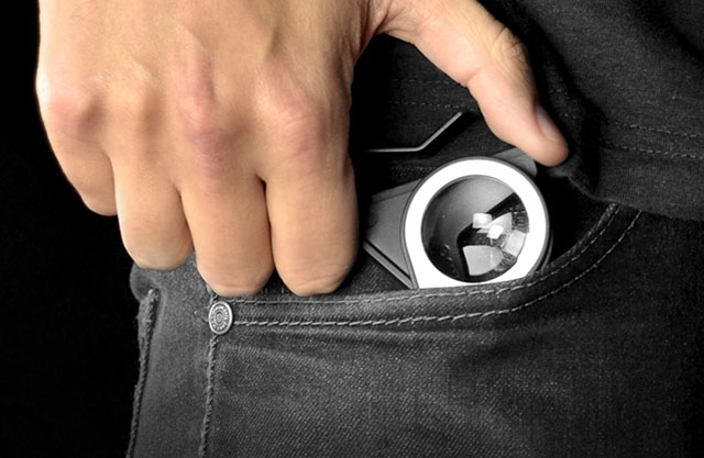 Раскрыв складные очки Homido mini, вы просто защелкиваете дужку держателя посередине вашего смартфона. Глядя на дисплей через круглые окуляры, вы можете наслаждаться погружением в объемные фотоснимки и видеоролики виртуальной реальности.