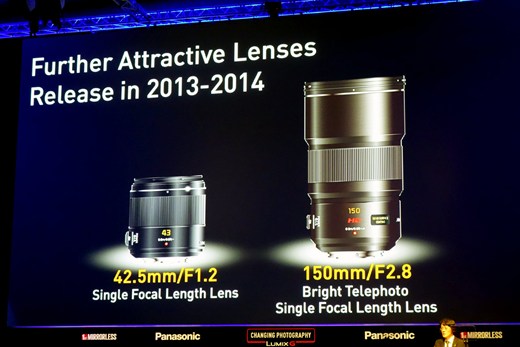 Panasonic пообещали два новых объектива для системы Lumix G, светосильный фикс 42,5мм F1.2 и телефото фикс 150мм F2.8. Оба объектива будут иметь оптический стабилизатор изображения. Более подробных данных пока нет.