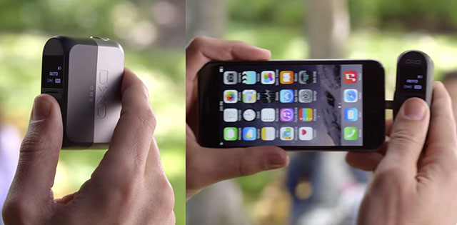 Одна из причин, позволивших сделать камеру столь маленькой – тот факт, что по сути это модульный девайс, без большого монитора для визирования во время съемки и просмотра снимков после. DxO ONE используется только совместно с iPhone или iPad, формируя функционально полноценное устройство с помощью коннектора Lightning («молния»). В состыкованном положении камера может поворачиваться в каждом из двух направлений на 60 градусов.